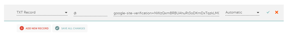 We can now move to adding our TXT record for TXT verification: