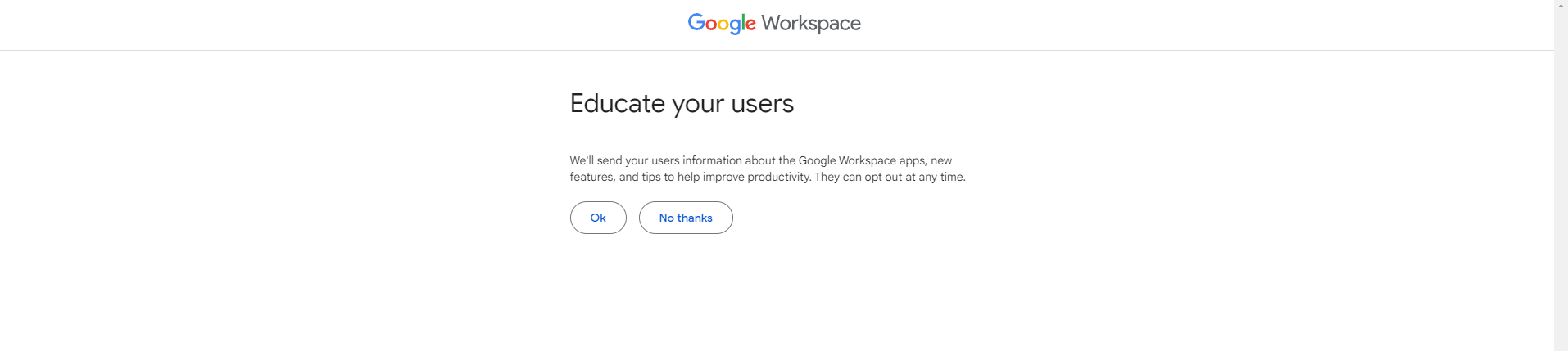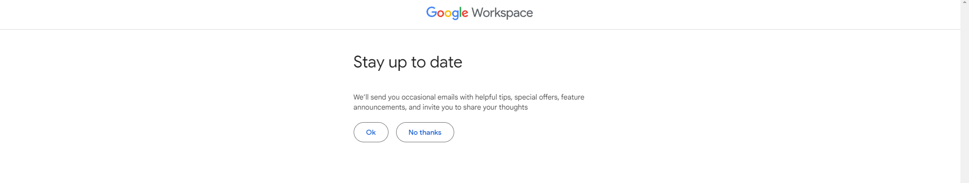 On the next page, you can choose whether or not you want marketing emails from Google. They’re useful on occasion; feel free to click “Ok” or “No thanks” depending on your preference.