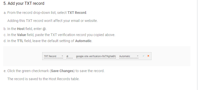 You’ll be met by a page that may look daunting, but don’t worry: It’s easy to set up TXT verification with most domain hosts.